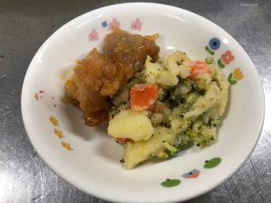 ・じゃがいも 2個…皮をむき、1㎝角に切り、崩れないぐらいに茹でる。
